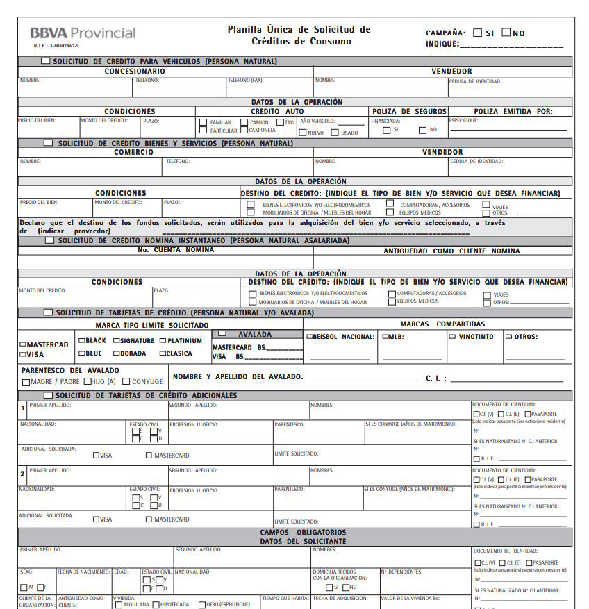 Tal como ocurre con los financiamientos de vehículos del BBVA, para optar por una tarjeta de crédito Provincial es necesario consignar los siguientes recaudos y llevarlos a una agencia del banco BBVA más cerca de ti: